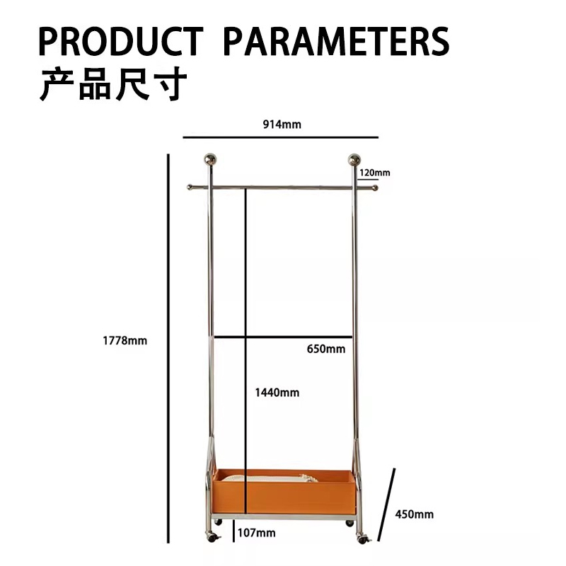 Blue Clothing Rack Designer Luxury Leather Pocket Home Movable High-end Floor Standing Clothes Rack