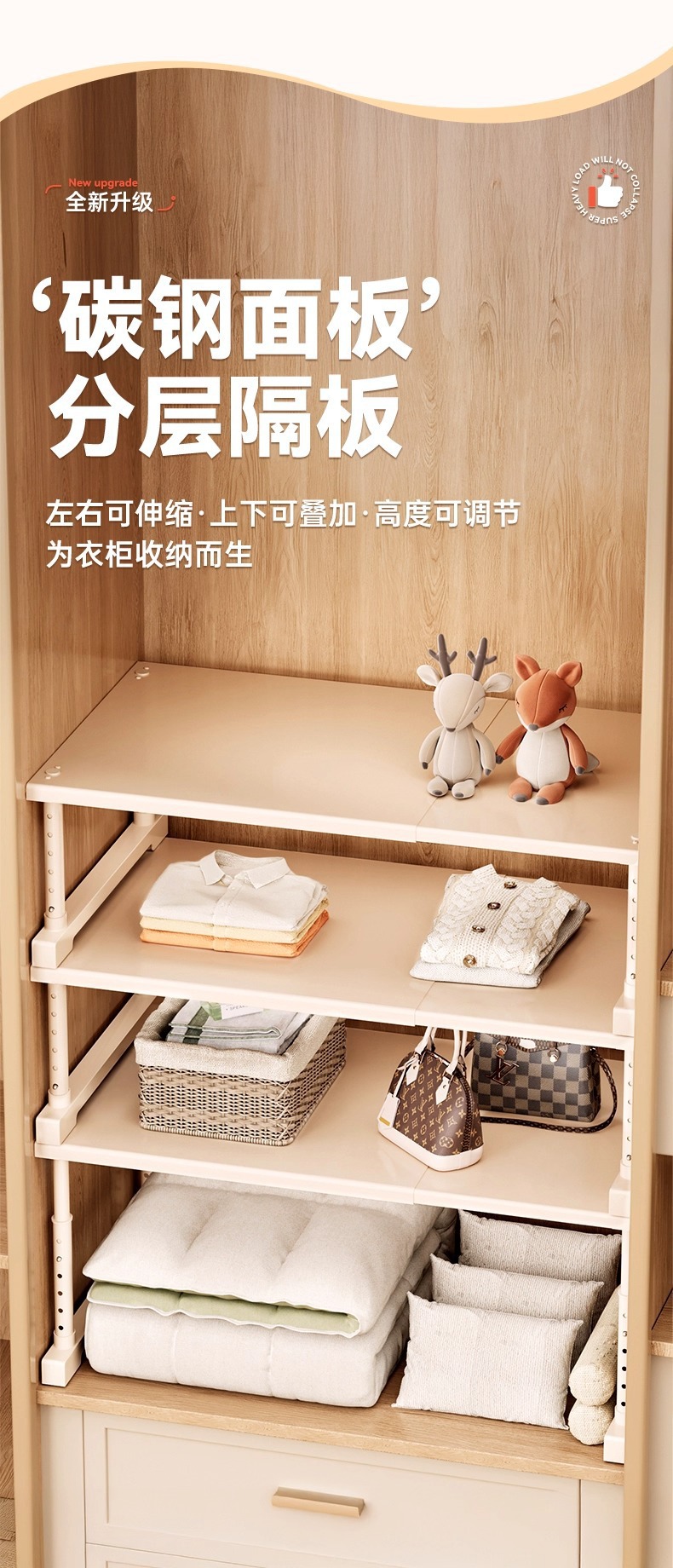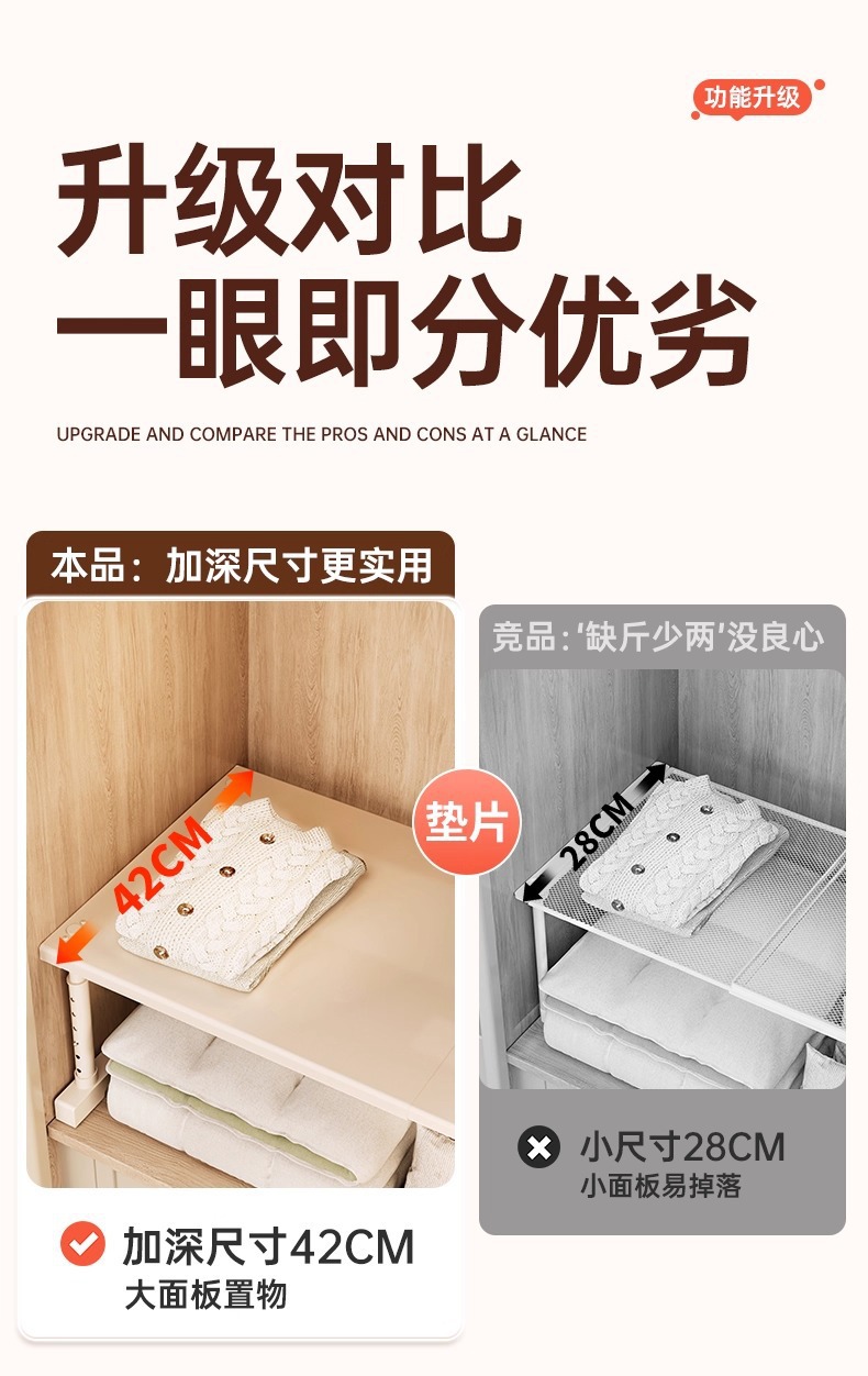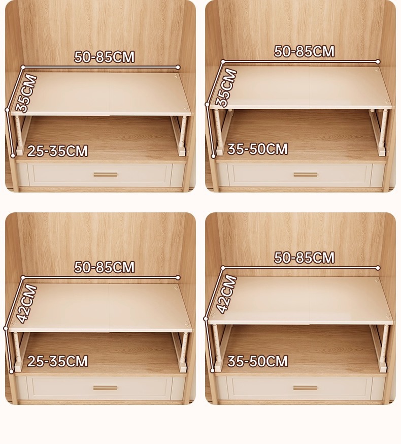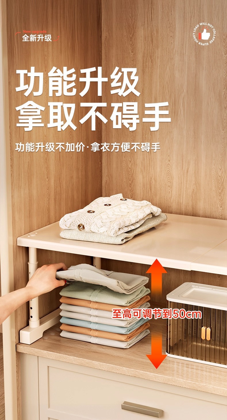 Cabinets with layered shelves, wardrobes for organizing and storing, expandable partitions without drilling, height adjustable brackets, shoe cabinets, storage racks