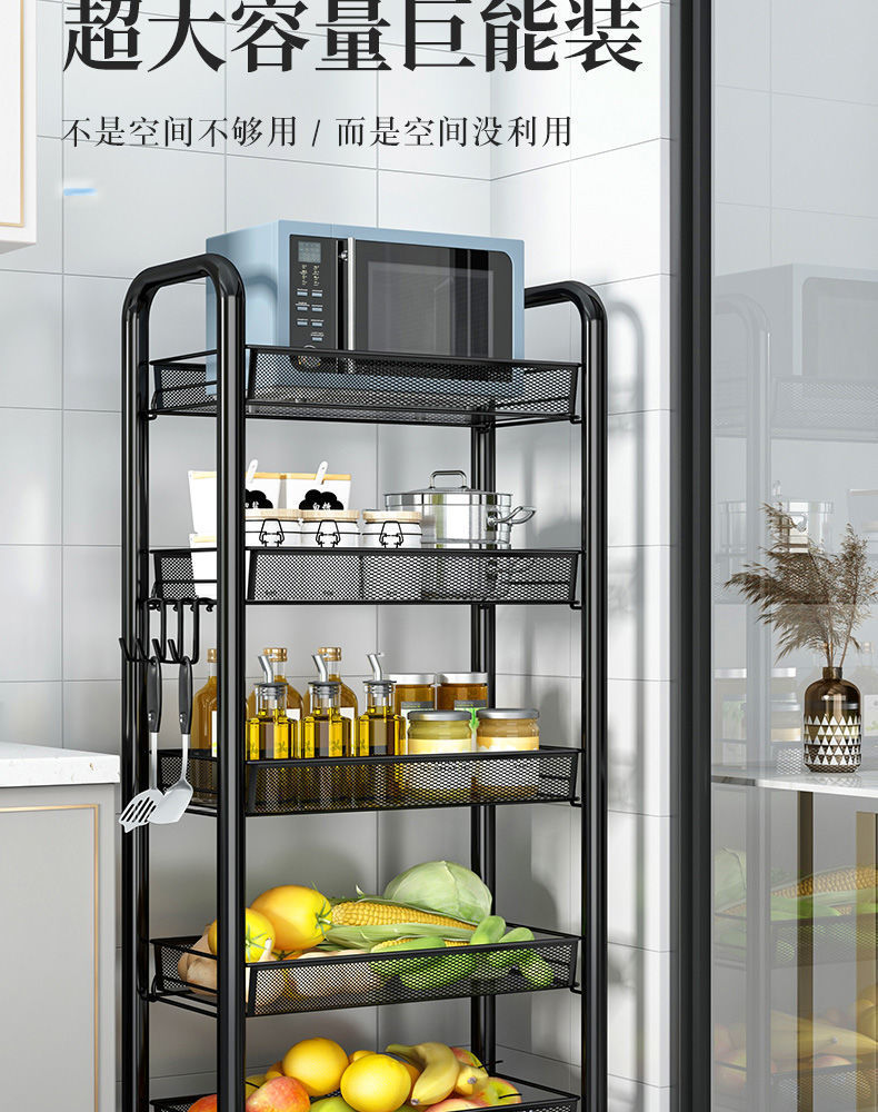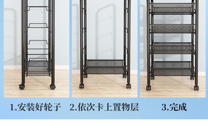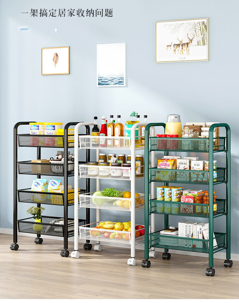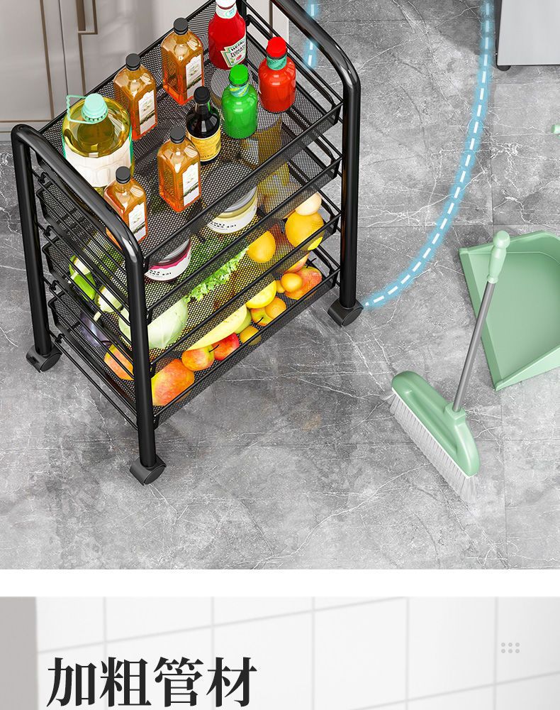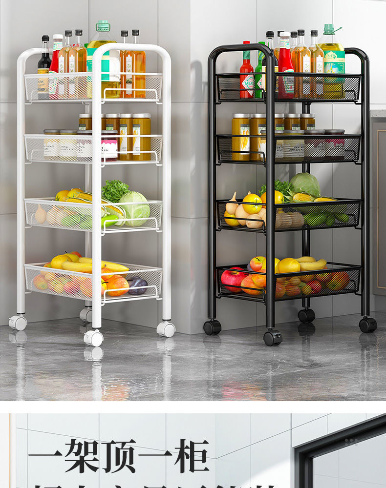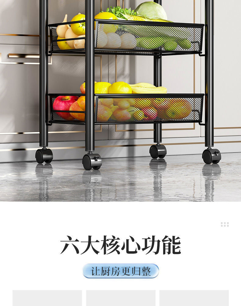 Kitchen storage rack, floor standing multi-layer movable storage rack, household storage trolley, multifunctional vegetable and fruit rack