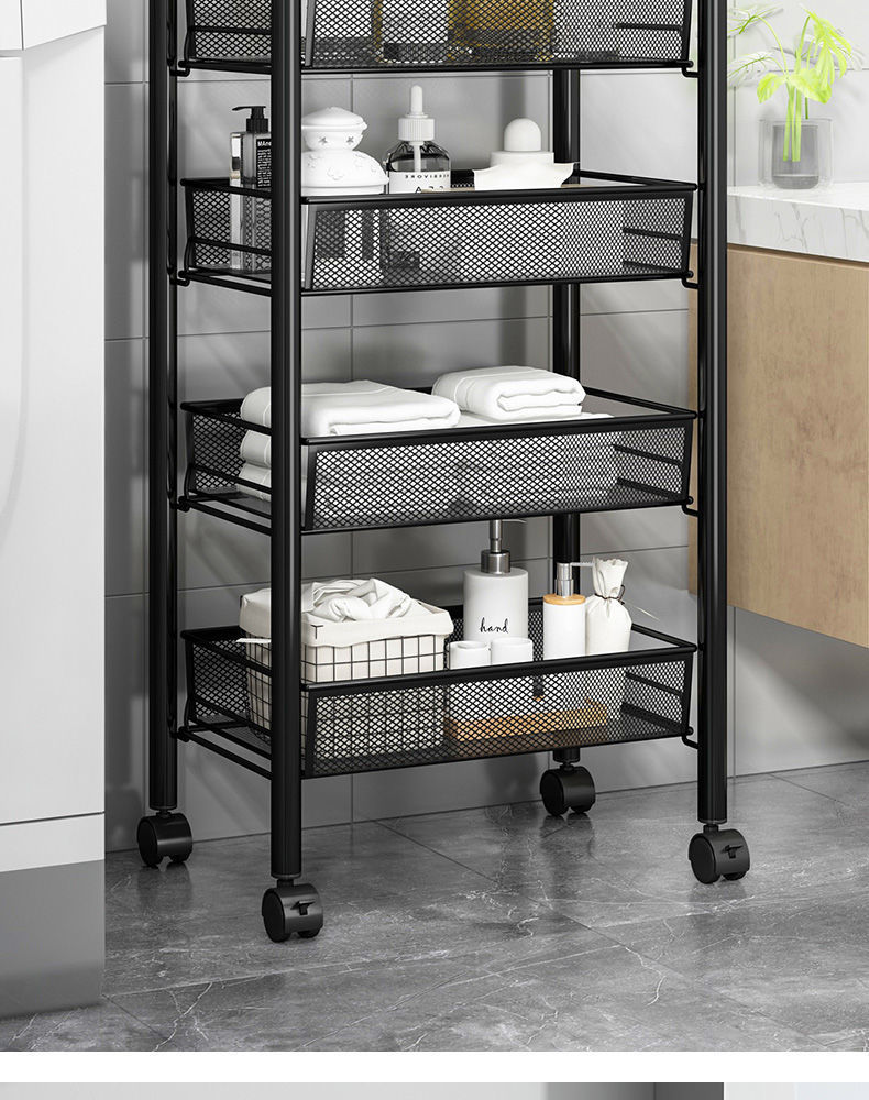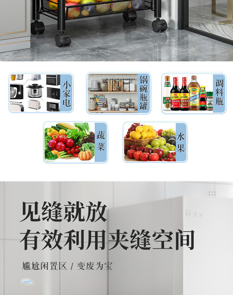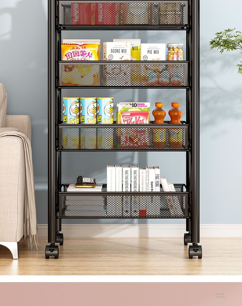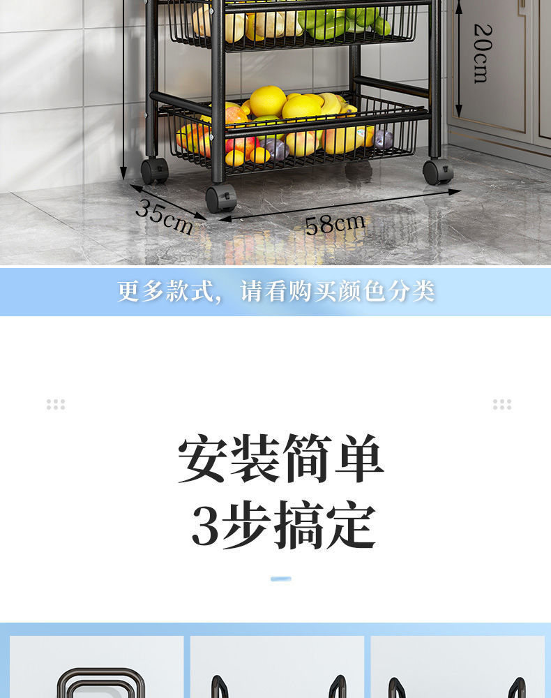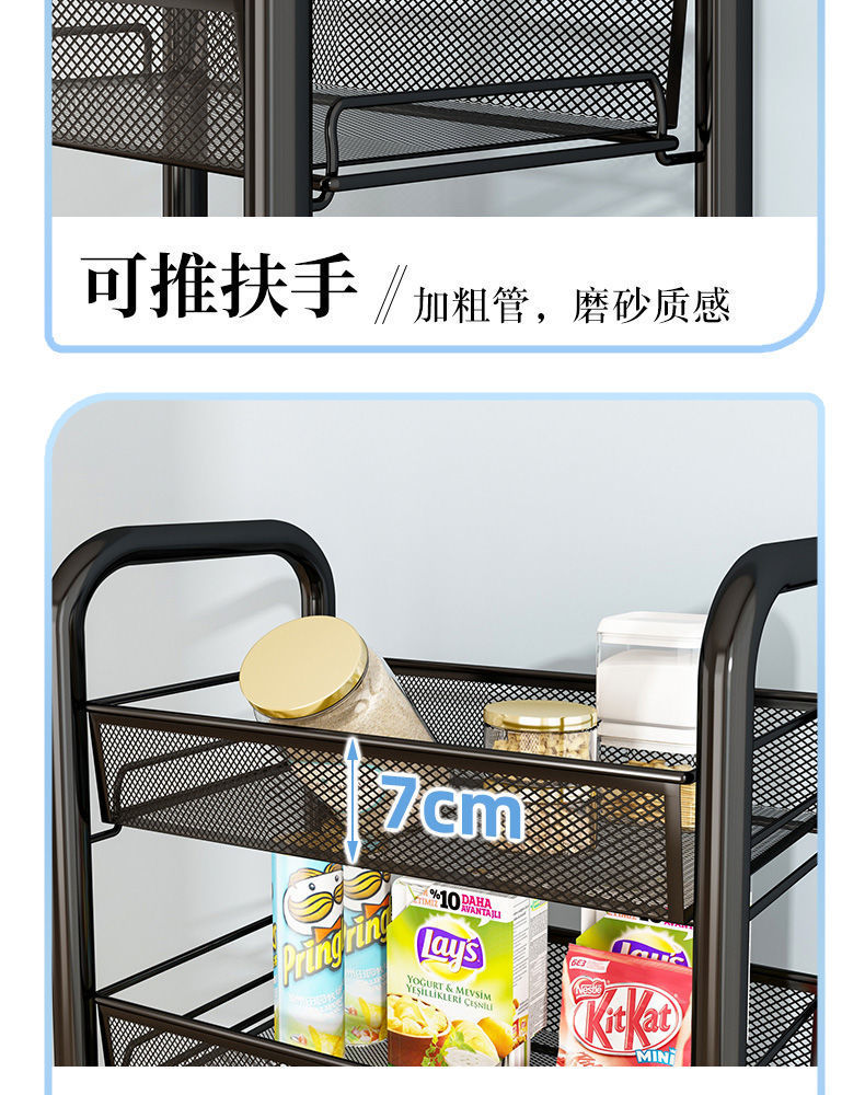 Kitchen storage rack, floor standing multi-layer movable storage rack, household storage trolley, multifunctional vegetable and fruit rack