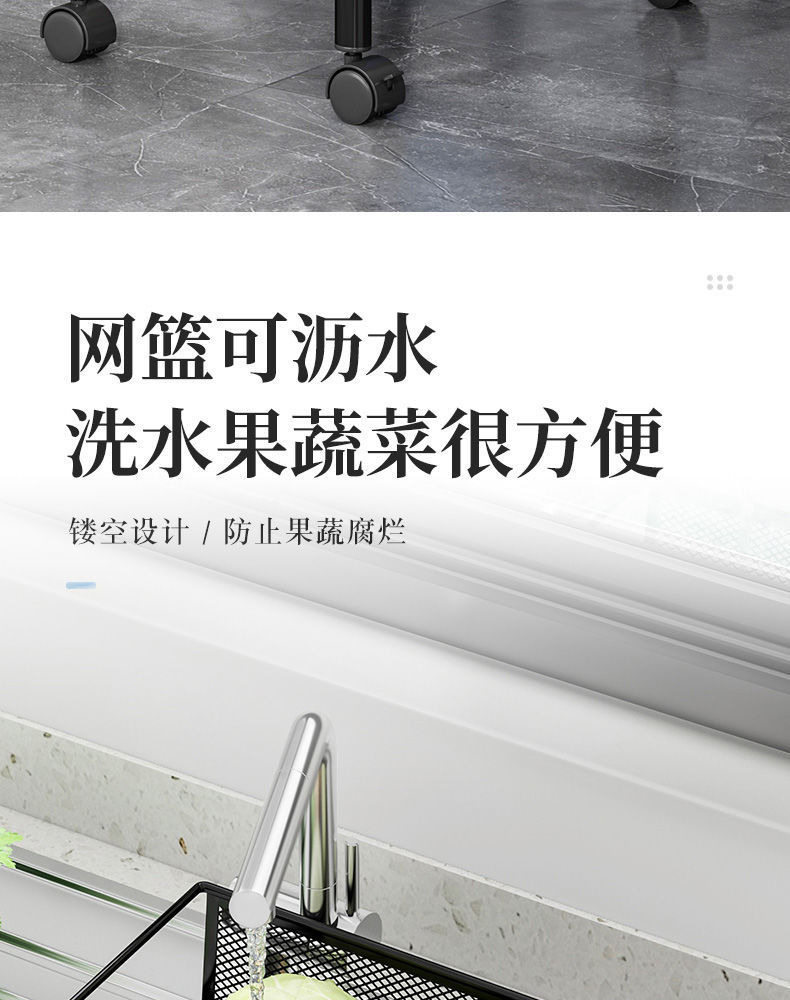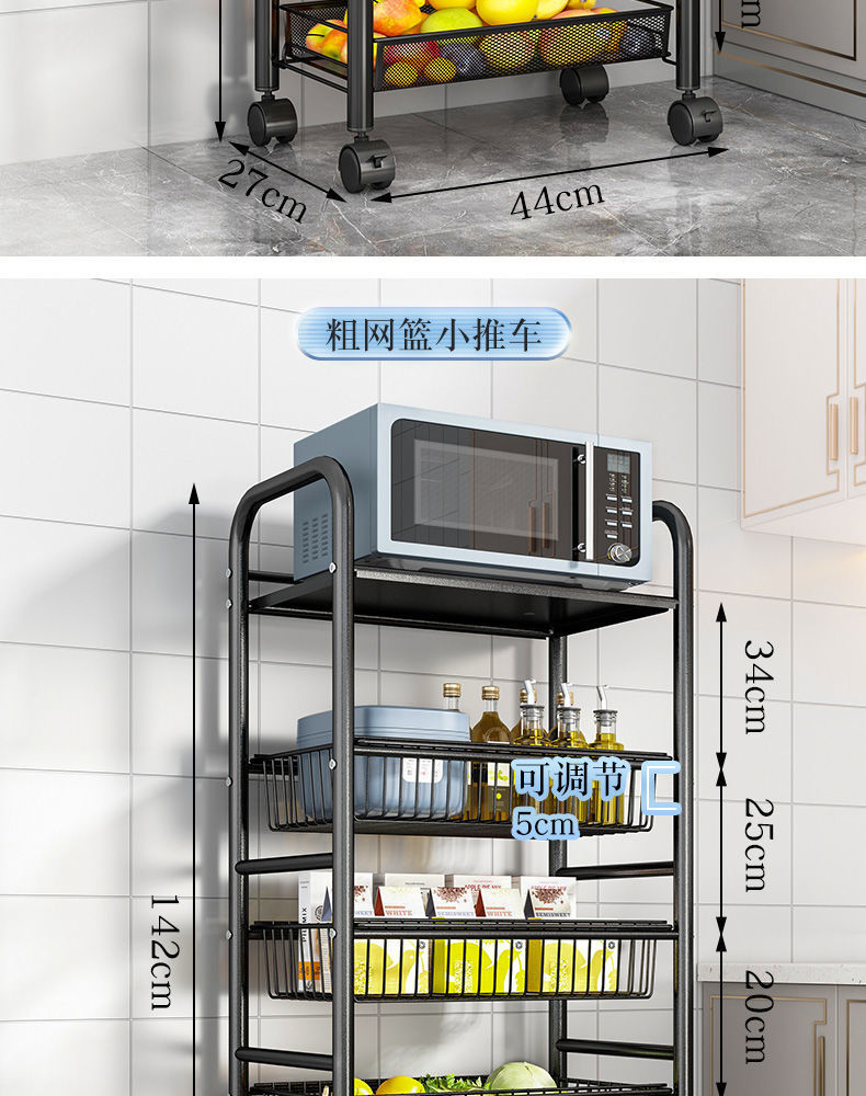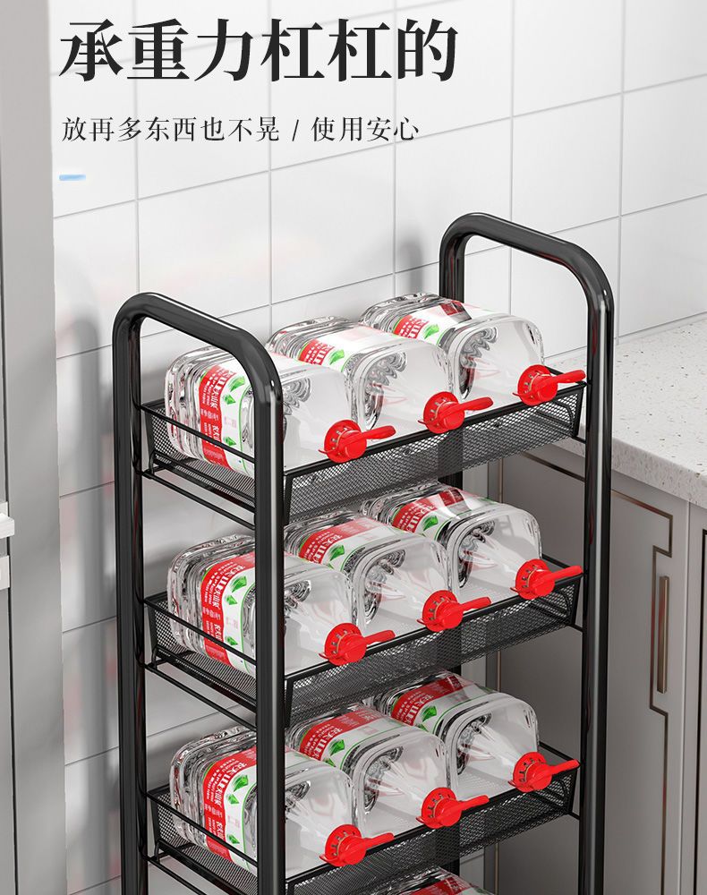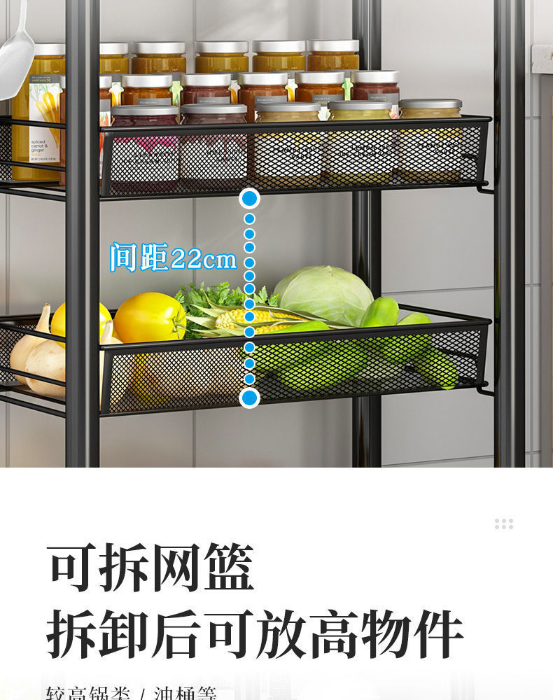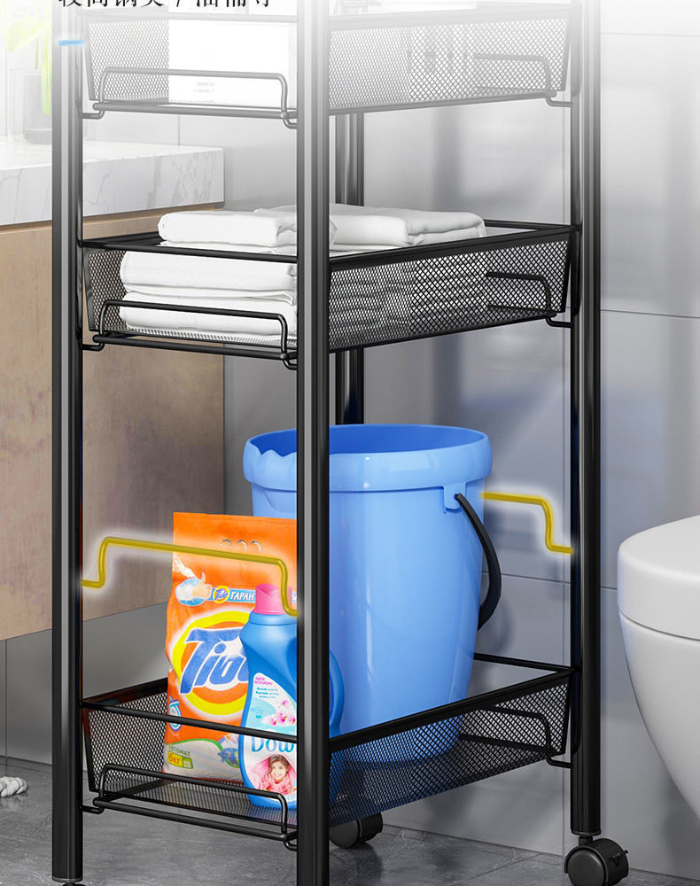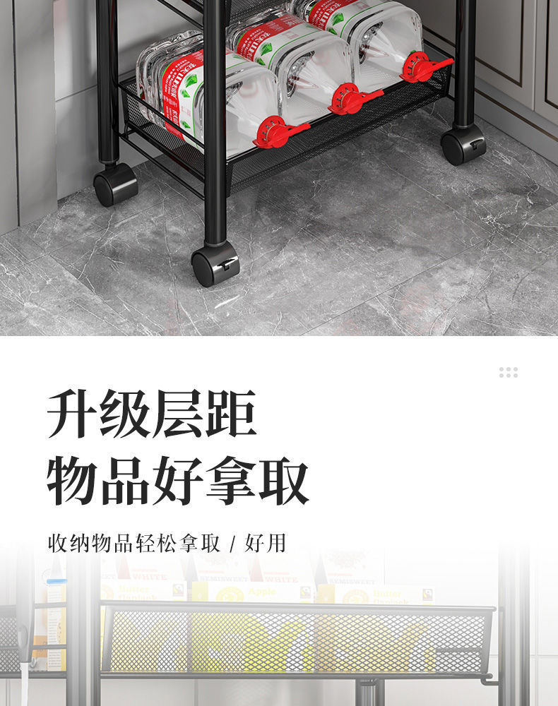 Kitchen storage rack, floor standing multi-layer movable storage rack, household storage trolley, multifunctional vegetable and fruit rack
