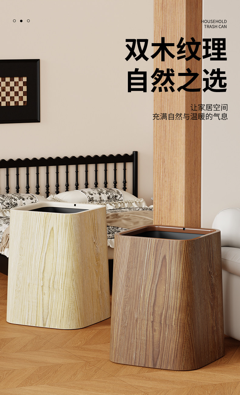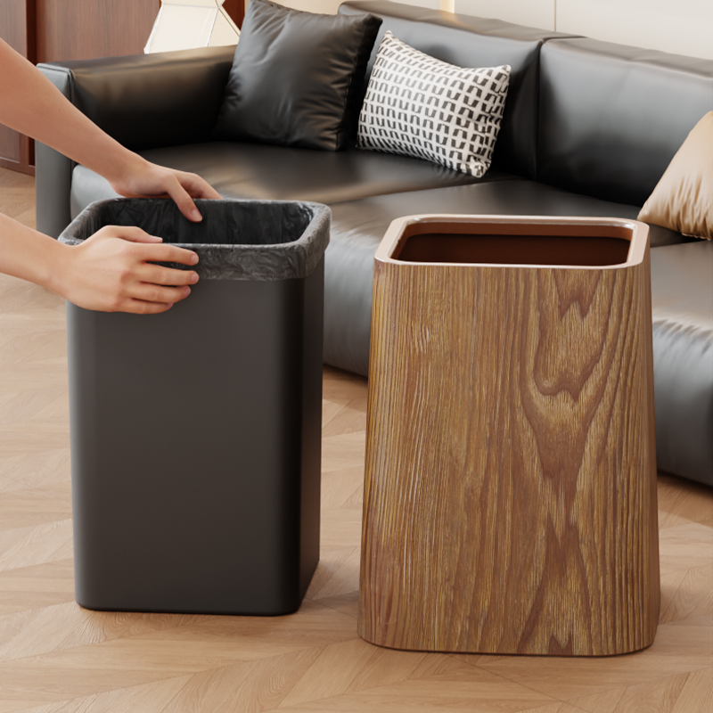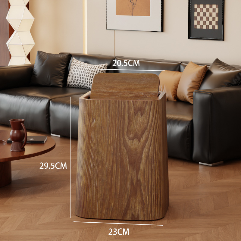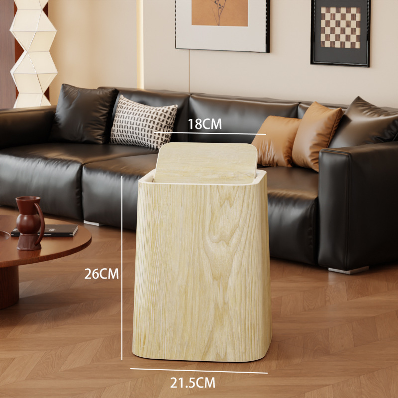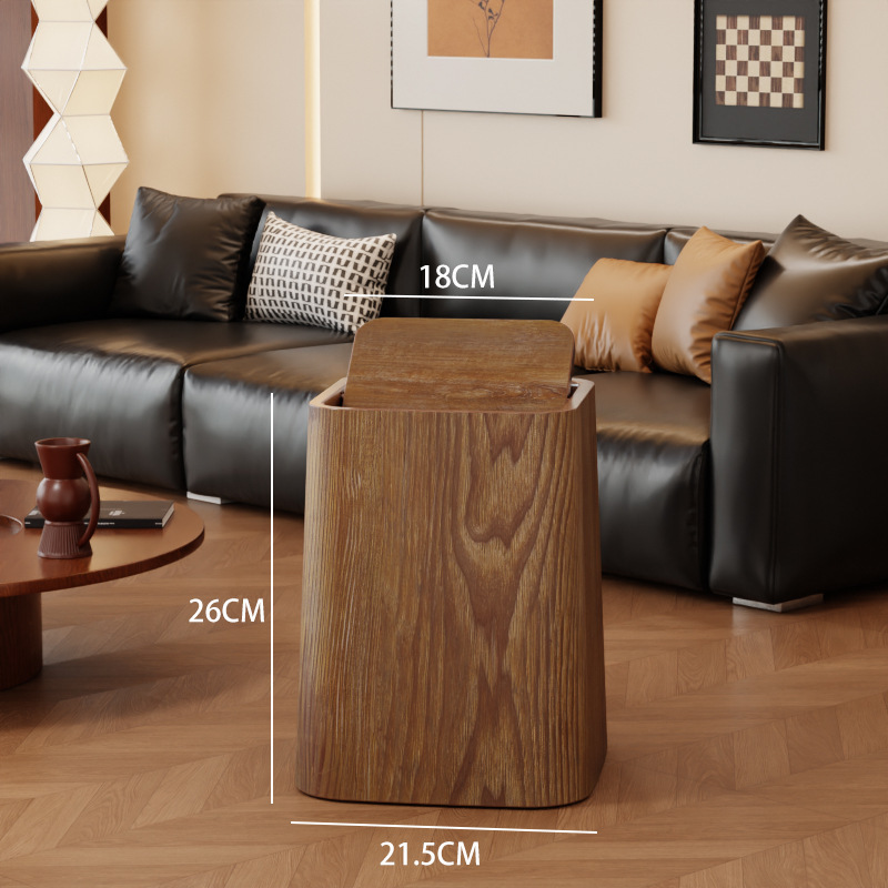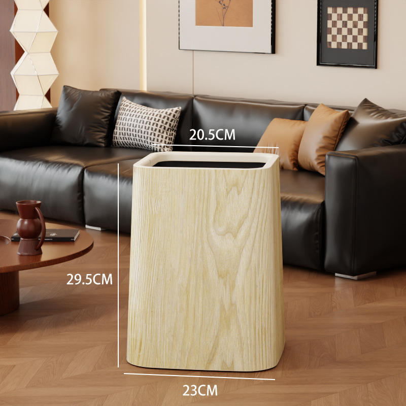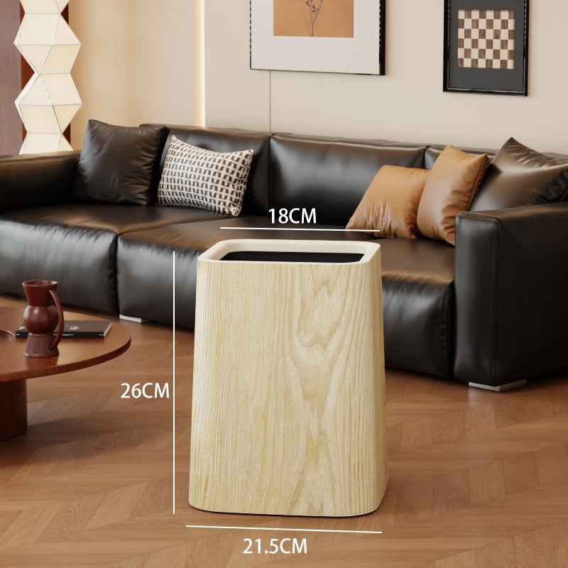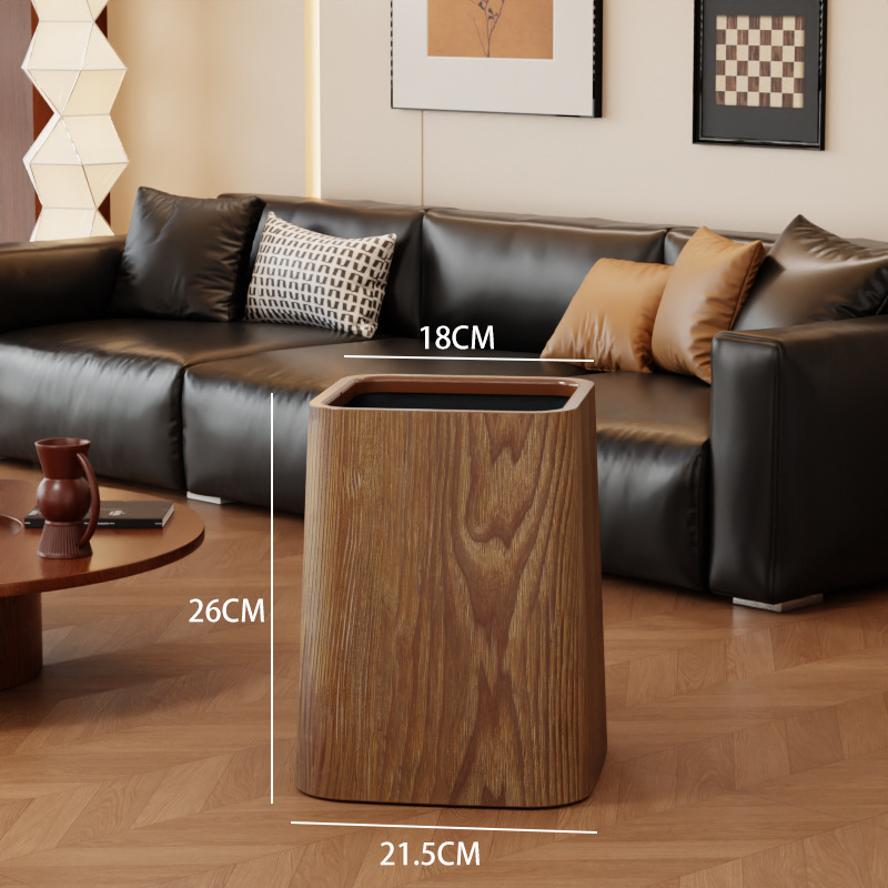 Wood grain trash can, home living room, bedroom, antique style, high-end, light luxury, paper basket, office, hotel sanitary bin