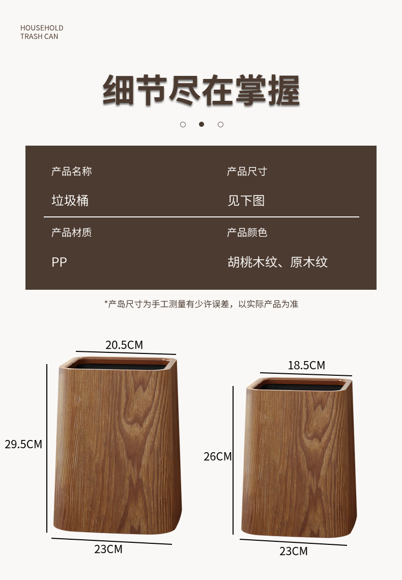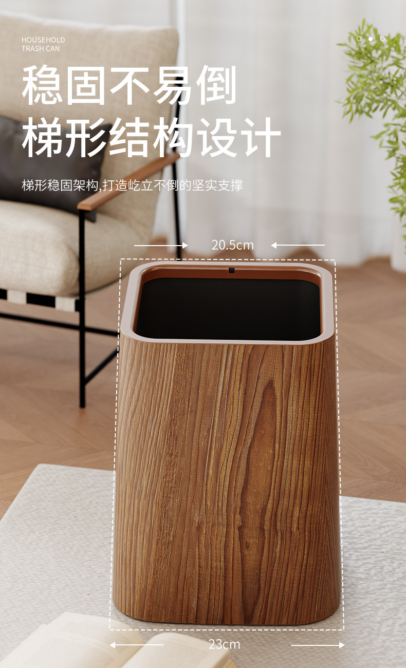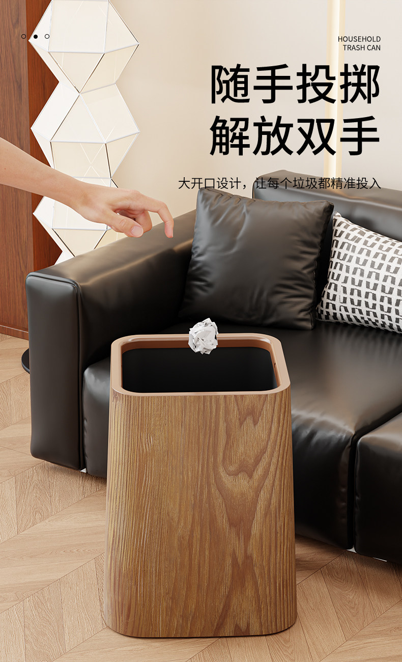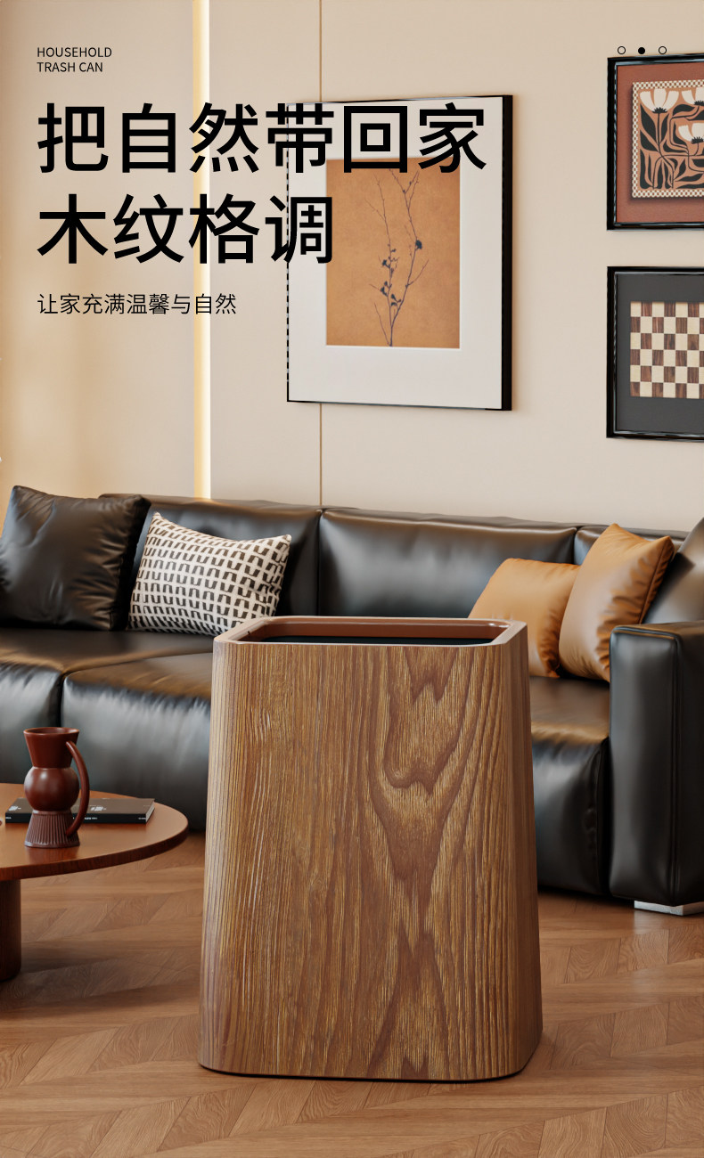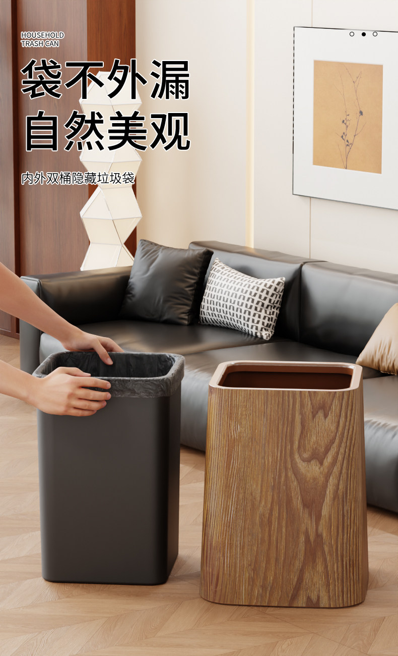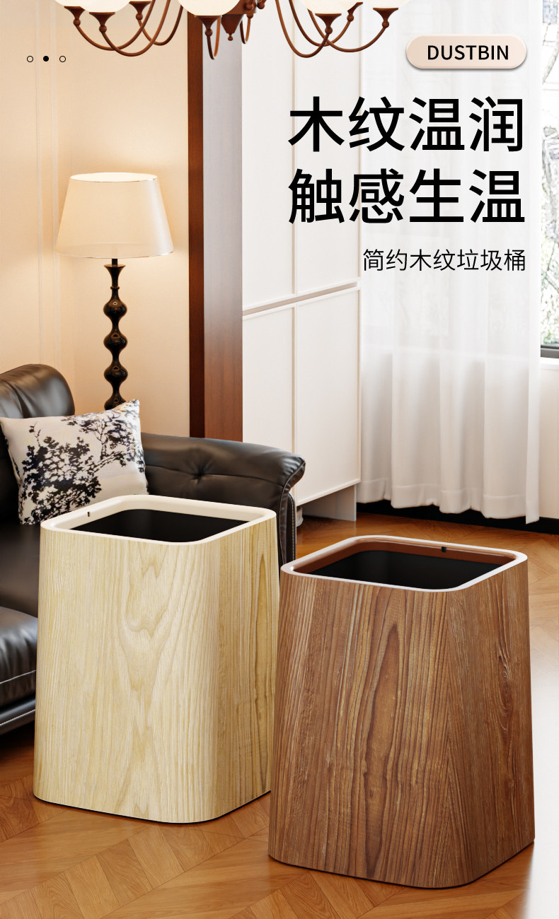 Wood grain trash can, home living room, bedroom, antique style, high-end, light luxury, paper basket, office, hotel sanitary bin