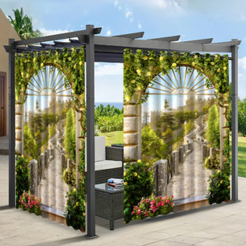 Cross border foreign trade, outdoor waterproof curtains and window screens, cross-border Amazon modern pavilions, sunshade and sun protection, outdoor scenery series