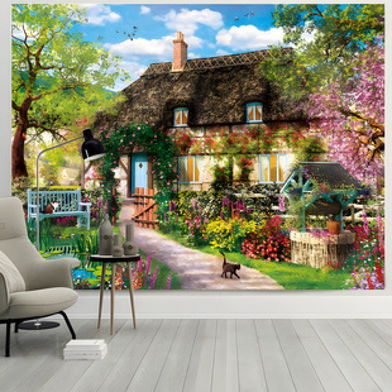 Cross border manufacturer direct sales live broadcast background cloth tapestry decorative cloth wall tapestry beach towel tapestry wooden door series