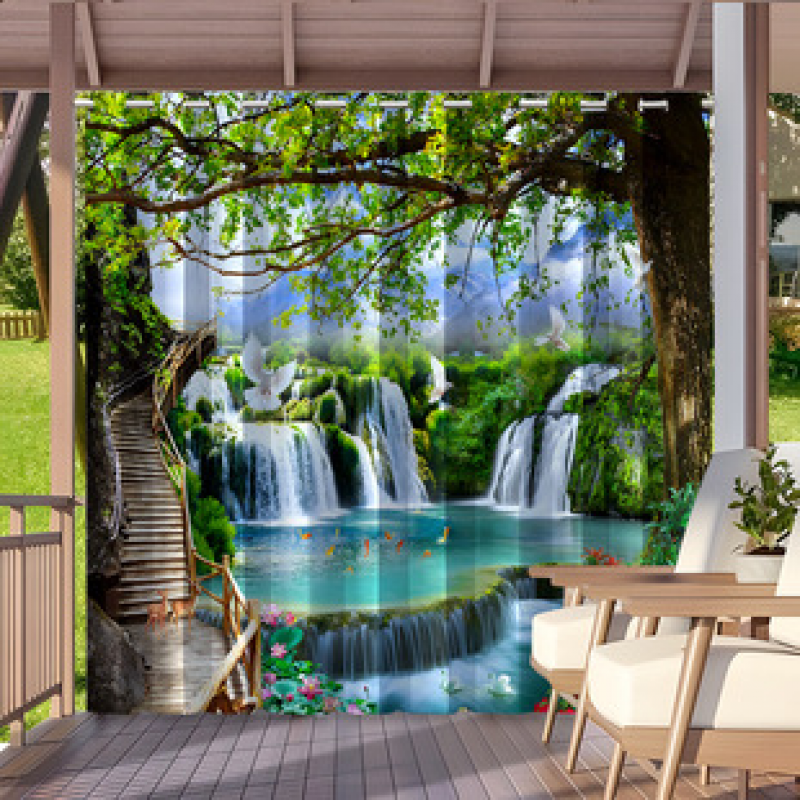 Cross border Foreign Trade Outdoor Waterproof Curtains and Window Screens Cross border Amazon Modern Pavilions Sunscreen Forest Series