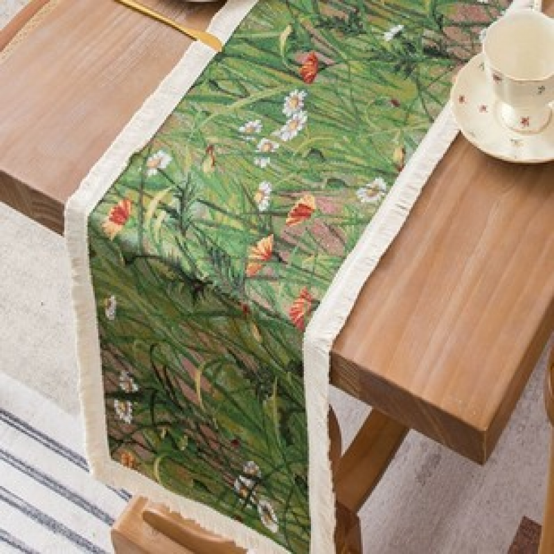 Cross border new Chinese green daisy tea table, dining table, TV cabinet, high-end boutique table flag
