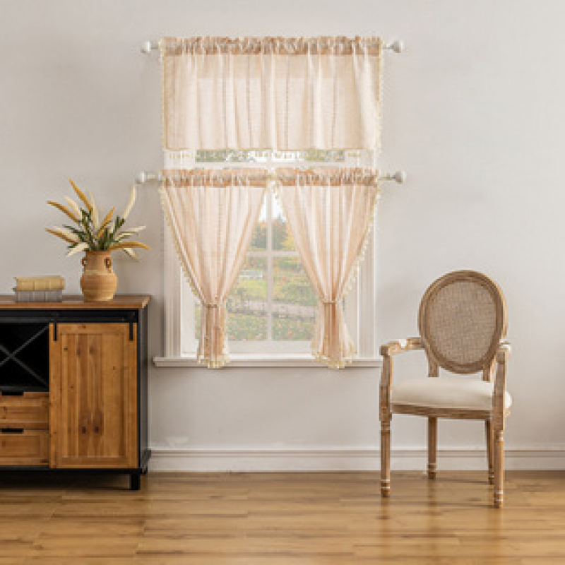 Manufacturer direct sales cross-border finished curtain three piece set embroidered solid color kitchen curtain Nordic style small curtain wholesale