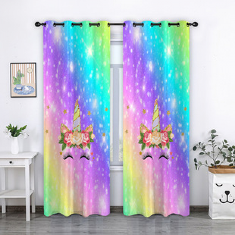 Manufacturer supplies cross-border Amazon hot selling cartoon anime unicorn children's room curtains living room study bedroom