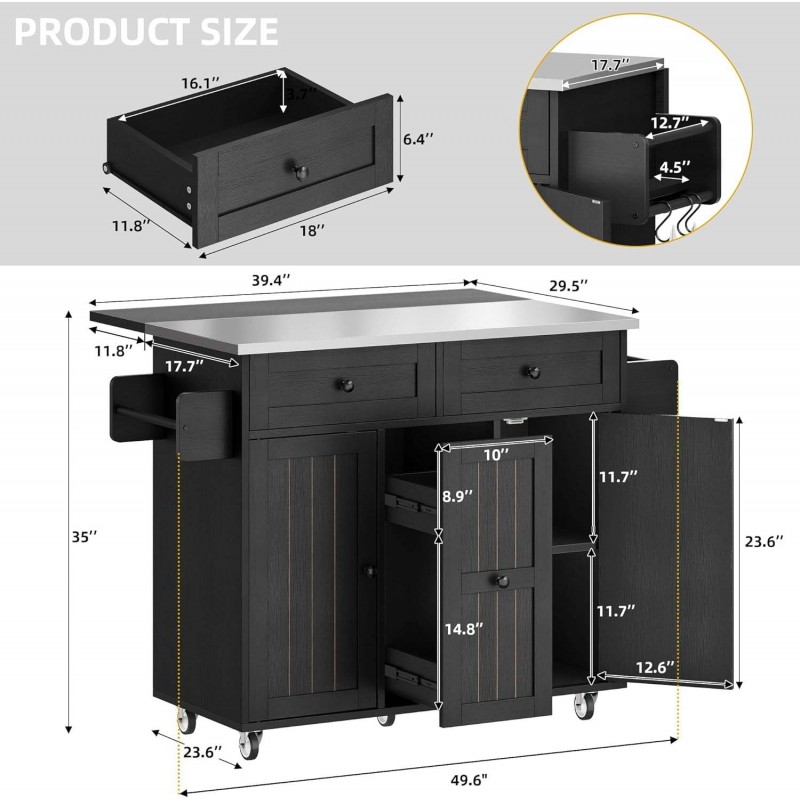Mobile Kitchen Island Cart with Folding Drop Leaf Breakfast Bar Large Wood Storage Cabinets Racks Wheels