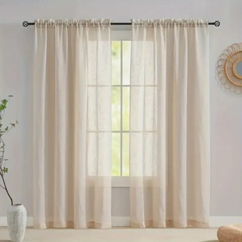1PC new linen curtain, living room bedroom decoration curtain, personalized decoration through pole window curtain