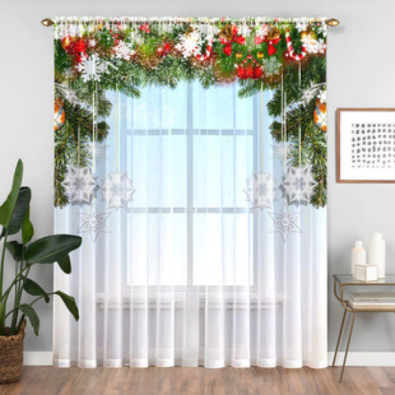 1pc new Christmas series window screen 3D digital printing manufacturer direct sales bedroom living room decoration pole through window screen