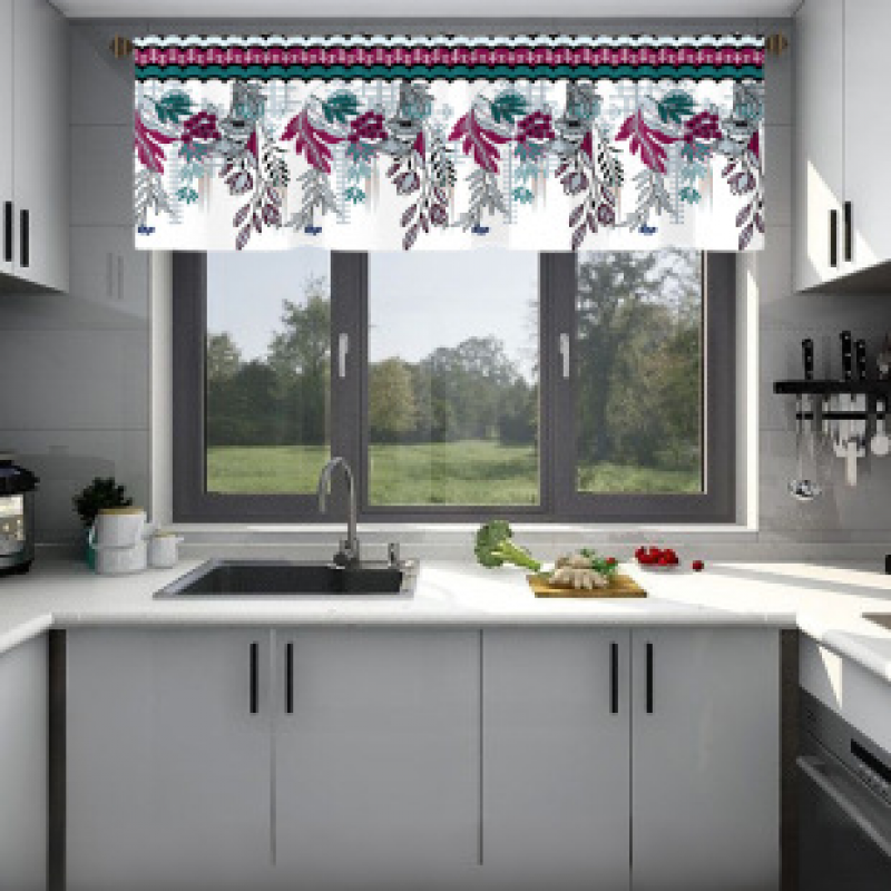 1PC multi-color floral short curtain kitchen curtain half curtain cross-border Christmas small window decoration polyester cotton