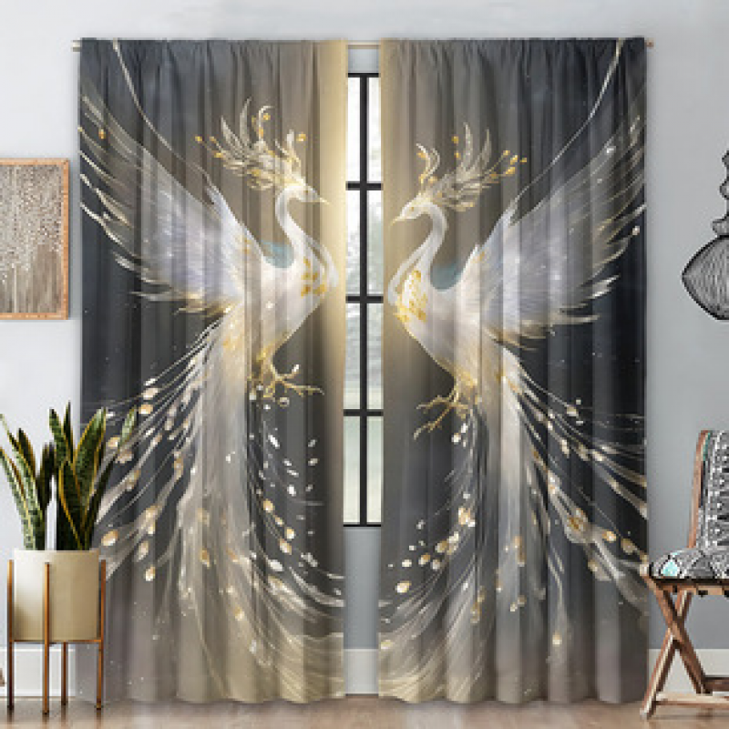 2PCS new crystal phoenix curtain factory distributes 3D digital printed curtain products for cross-border Amazon hot sale