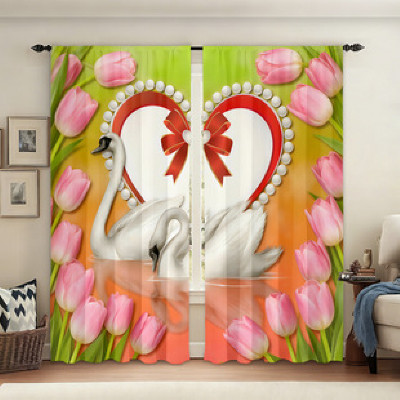 2pcs Valentine's Day window screen manufacturer supplies cross-border Amazon 3D digital printed fabric curtains and window screens