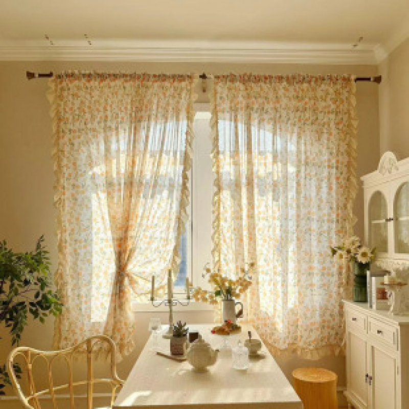 American style countryside lotus leaf edge window screen curtains living room bedroom balcony finished products cross-border Amazon lace finished yarn