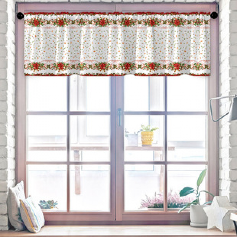 1PC floral short curtain kitchen curtain half curtain cross-border Christmas small window decoration polyester cotton