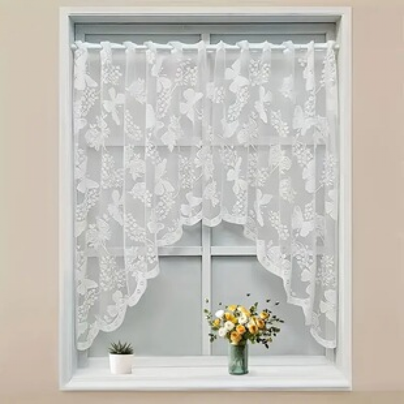 Butterfly triangle curtain, white lace kitchen partition curtain, coffee curtain, door curtain, bay window, short curtain, cabinet decoration