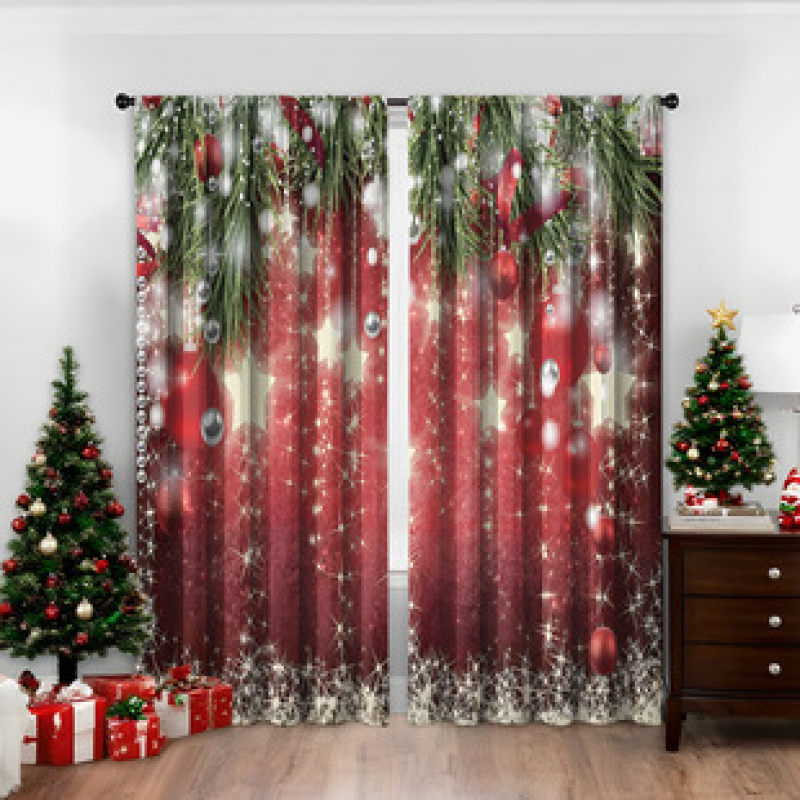 2pcs New Christmas Pattern Curtains Cross border Manufacturer Supply Living Room Bedroom 3D Digital Printing High Precision