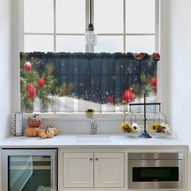 1PC multi-color patterned short curtain kitchen curtain half curtain cross-border Christmas small window decoration polyester cotton