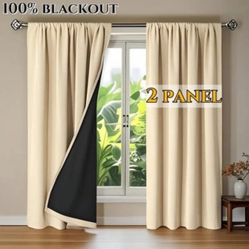 2PC new beige blackout cloth curtains, living room bedroom decoration curtains, personalized decoration pole curtains