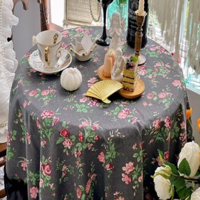 2025 New Product Black Flower and Black Yarn Edge Tablecloth Anti scalding Tablecloth Tea Table Cloth