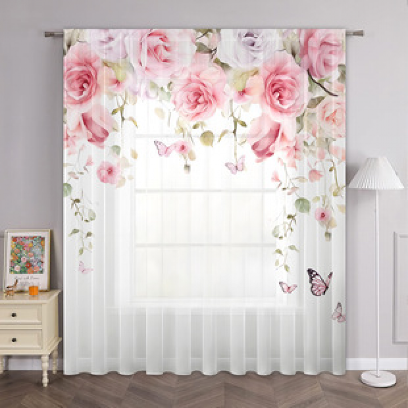 1pc new colorful floral window screen 3D digital printing bedroom living room decoration manufacturer direct sales through pole window screen