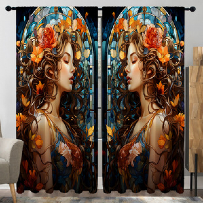 2PCS Animal and Plant Landscape Series Curtains Factory OEM 3D Digital Printing Cross border Amazon Curtains Hot Selling Flowers