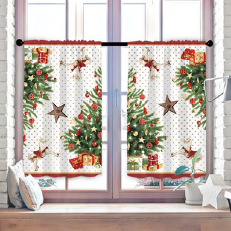 2pcs Kitchen Short Curtain Christmas Pattern Cross border Hot Sale Factory Direct Supply 3D Digital Printing Waterproof and Oil proof