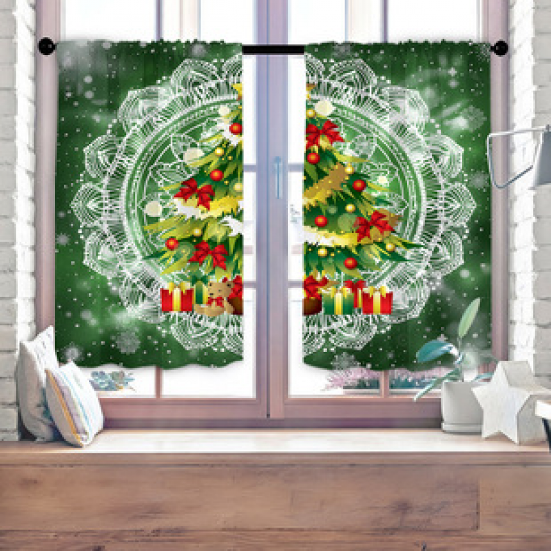 2pcs Christmas kitchen short curtain floral pattern cross-border hot selling factory direct supply 3D digital printing waterproof and oil resistant