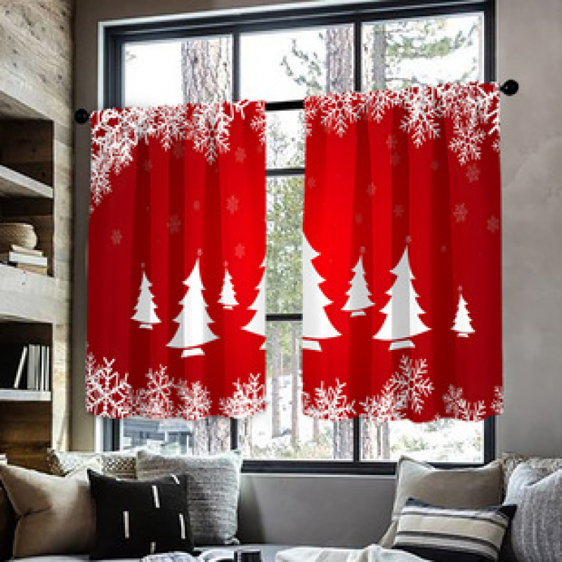 2pcs Christmas kitchen short curtain floral pattern cross-border hot selling factory direct supply 3D digital printing waterproof and oil resistant