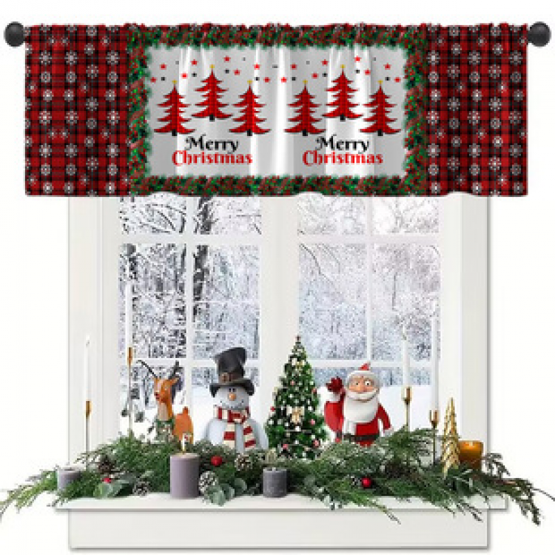 1PC multi-color patterned short curtain kitchen curtain half curtain cross-border Christmas small window decoration polyester cotton