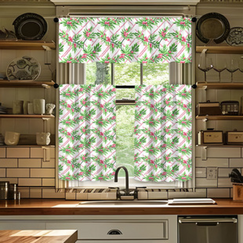 3D Christmas digital printed kitchen short curtain manufacturer supplies directly to cross-border platform Amazon WISH hot selling boutique