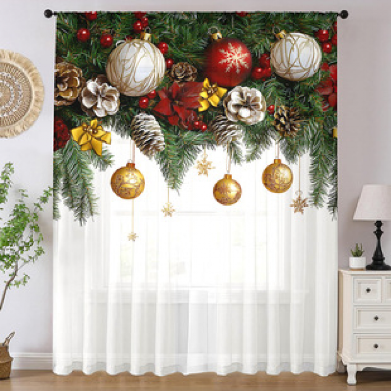 1pc new Christmas series window screen 3D digital printing manufacturer direct sales bedroom living room decoration pole through window screen