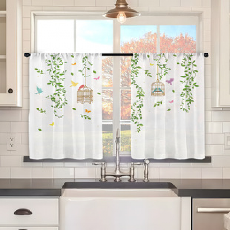2pcs kitchen short curtain cartoon pattern cross-border hot selling factory direct supply 3D digital printing waterproof and oil resistant