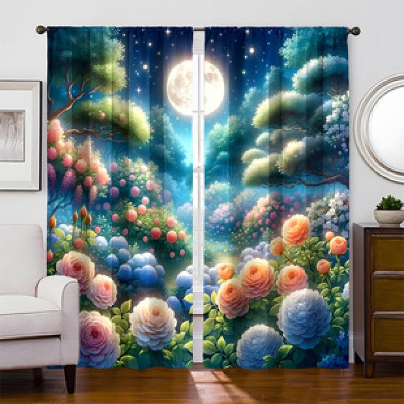 2PCS Flower Character Curtain Factory OEM 3D Digital Printing Cross border Amazon Curtain Hot Selling Pattern