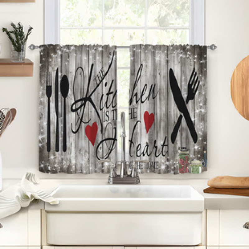 2pcs kitchen short curtain letter pattern cross-border hot selling factory direct supply 3D digital printing waterproof and oil resistant