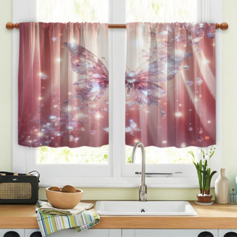 2pcs kitchen short curtain floral pattern cross-border hot selling factory direct supply 3D digital printing waterproof and oil resistant