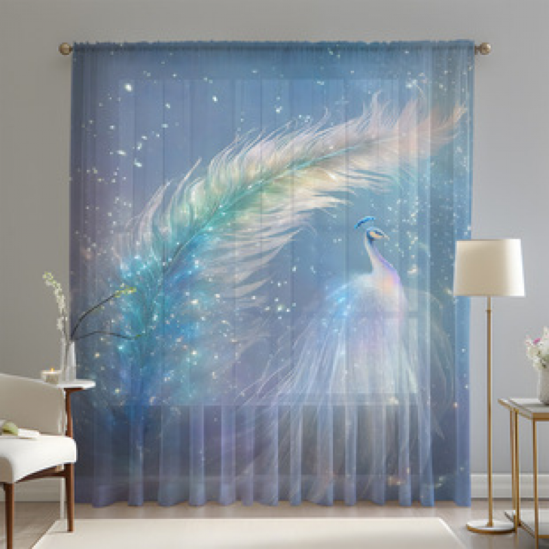 1pc new fresh art peacock window screen 3D digital printing bedroom living room decoration factory direct sales through pole