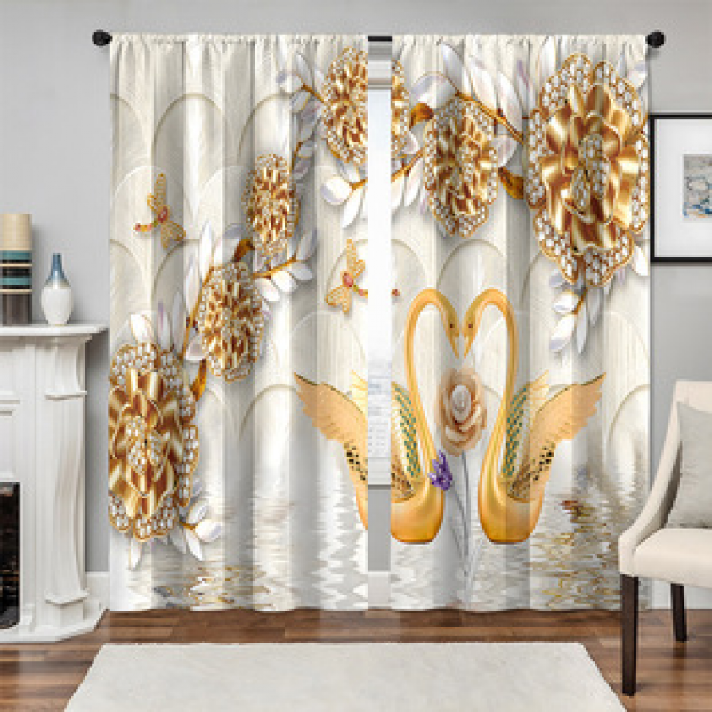 2pcs New Light Luxury Flower Pattern Curtains Cross border Manufacturer Supply Living Room Bedroom 3D Digital Printing