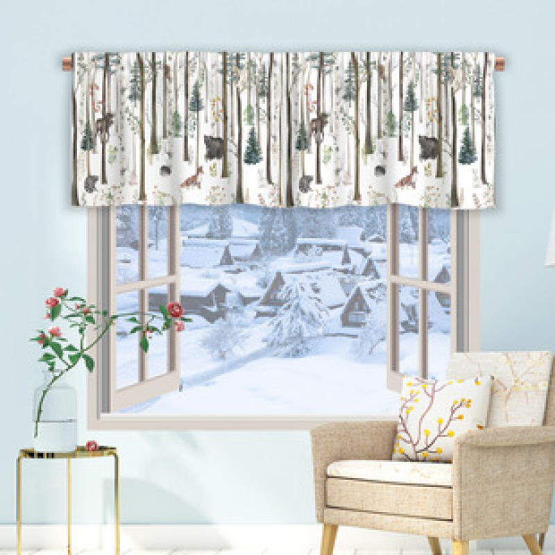 1PC tree branch pattern short curtain kitchen curtain half curtain cross-border Christmas small window decoration polyester cotton