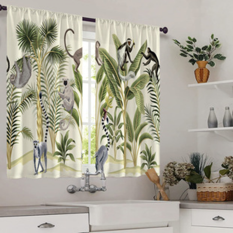 2pcs Kitchen Short Curtain Tropical Plant Pattern Cross border Hot Sale Factory Direct Supply 3D Digital Printing Waterproof and Oil proof