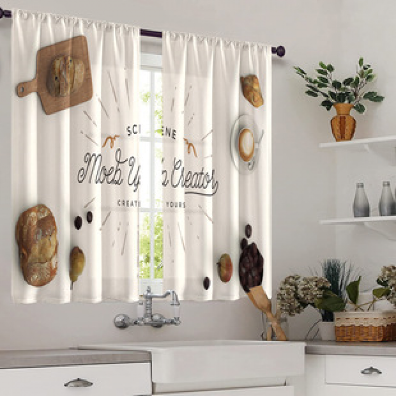 2pcs kitchen short curtain food pattern cross-border hot selling factory direct supply 3D digital printing waterproof and oil resistant