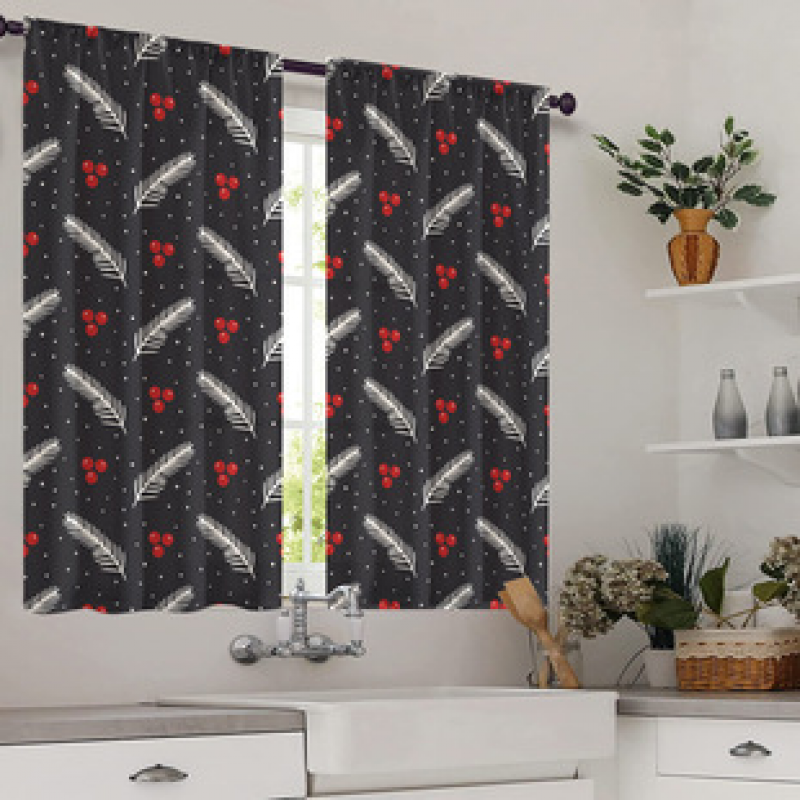 2pcs Kitchen Short Curtain Christmas Pattern Cross border Hot Sale Factory Direct Supply 3D Digital Printing Waterproof and Oil proof