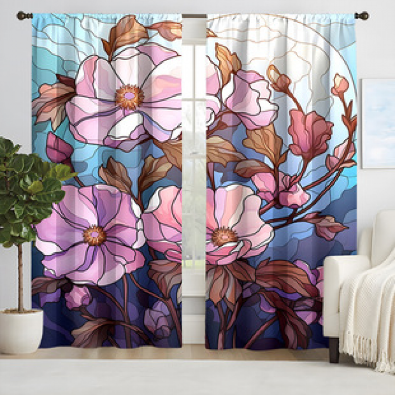 2pcs New Sunflower Pattern Curtains Cross border Manufacturer Supply Living Room Bedroom 3D Digital Printing High Precision Windows