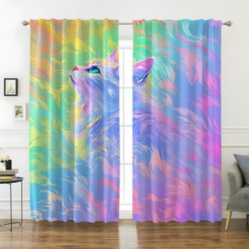 2pcs New Cute Rainbow Cat Pattern Curtains Cross border Manufacturer Supply Living Room Bedroom 3D Digital Printing High Precision
