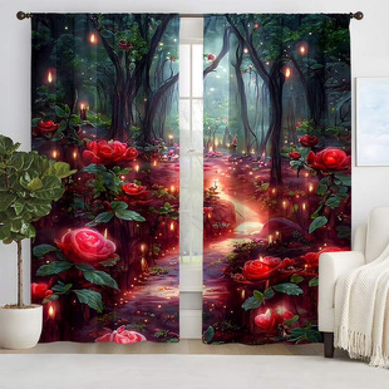 2pcs New Rose Path Pattern Curtains Cross border Manufacturer Supply Living Room Bedroom 3D Digital Printing High Precision