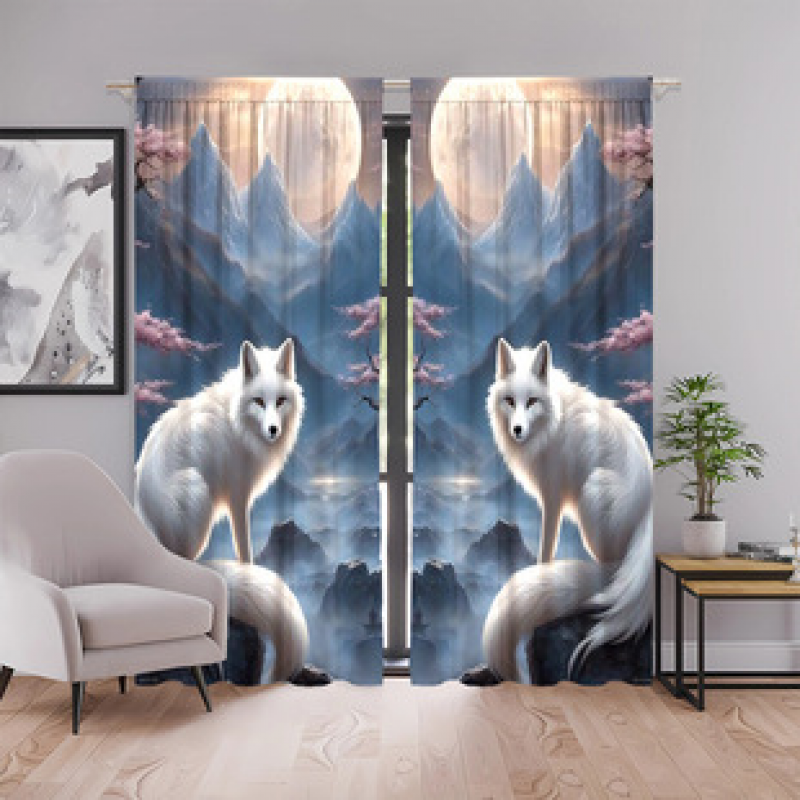 2pcs factory direct sales symmetrical fox curtains cross-border direct supply 3D digital printed fabric curtains