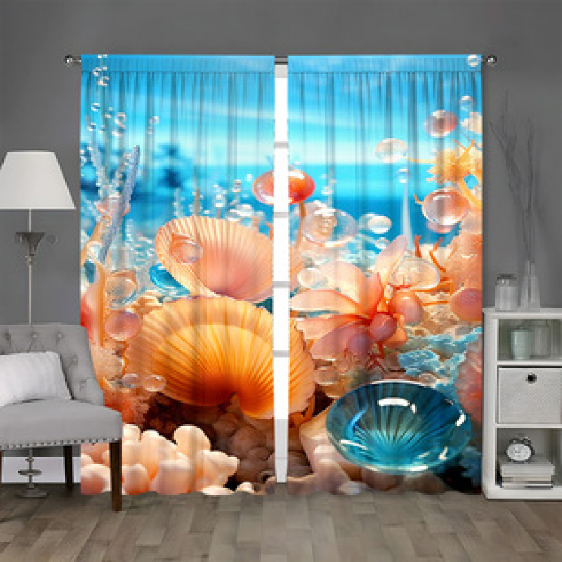 2pcs Home Decoration Curtains Ocean Shell Series Manufacturer Supply Cross border 3D Digital Printing Fabric Curtains and Window Screens