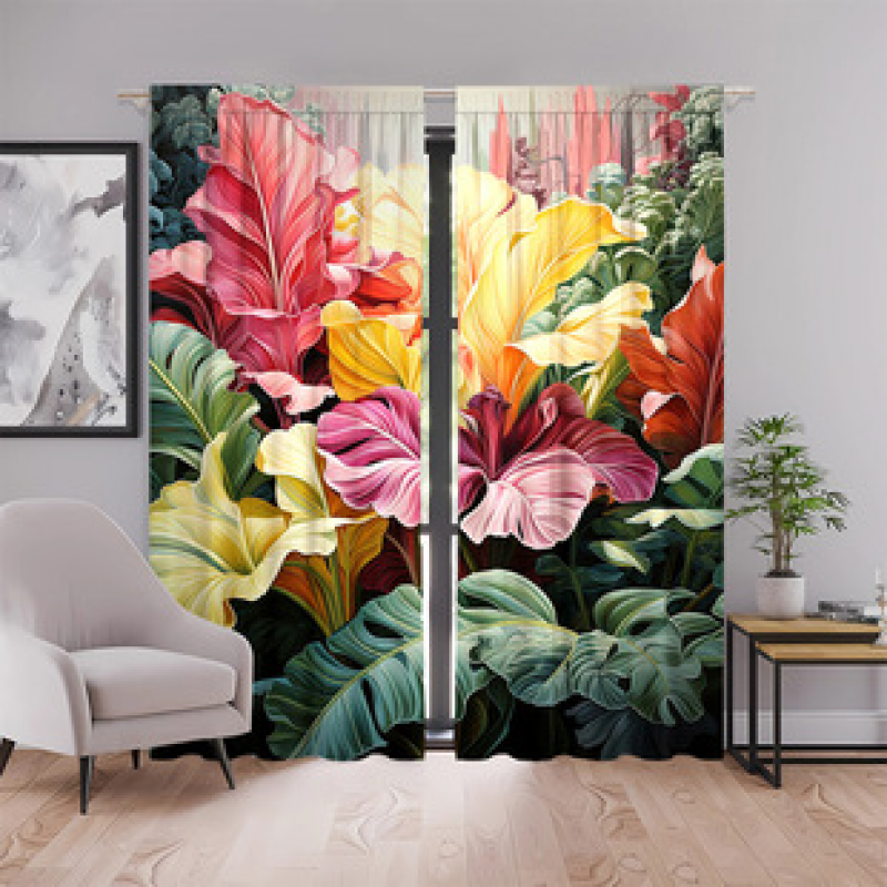 2pcs factory direct sales fantasy leaf series 3D digital printing fabric curtains and window screens